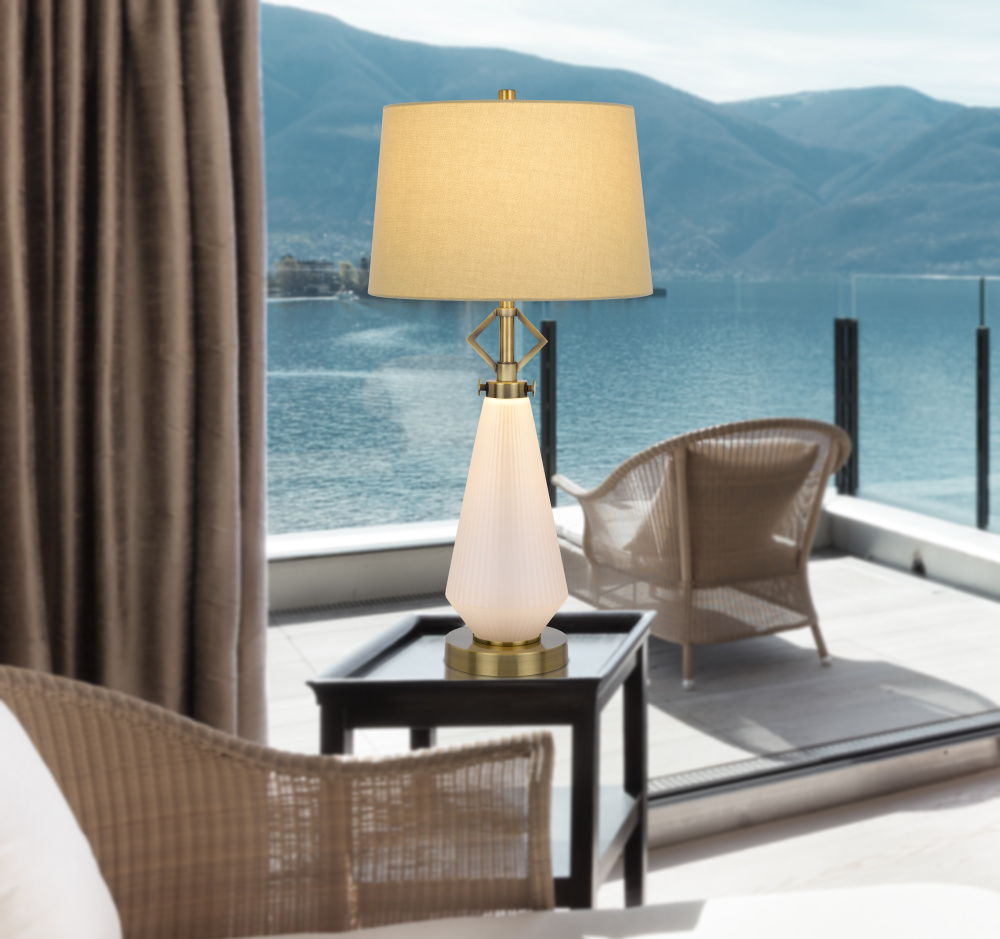 100W led Carrizo metal/glass table lamp with 2W led night light