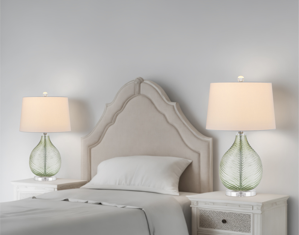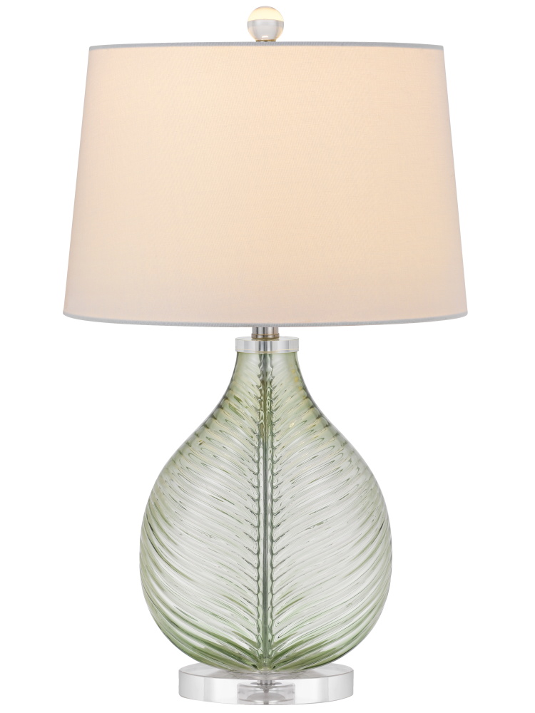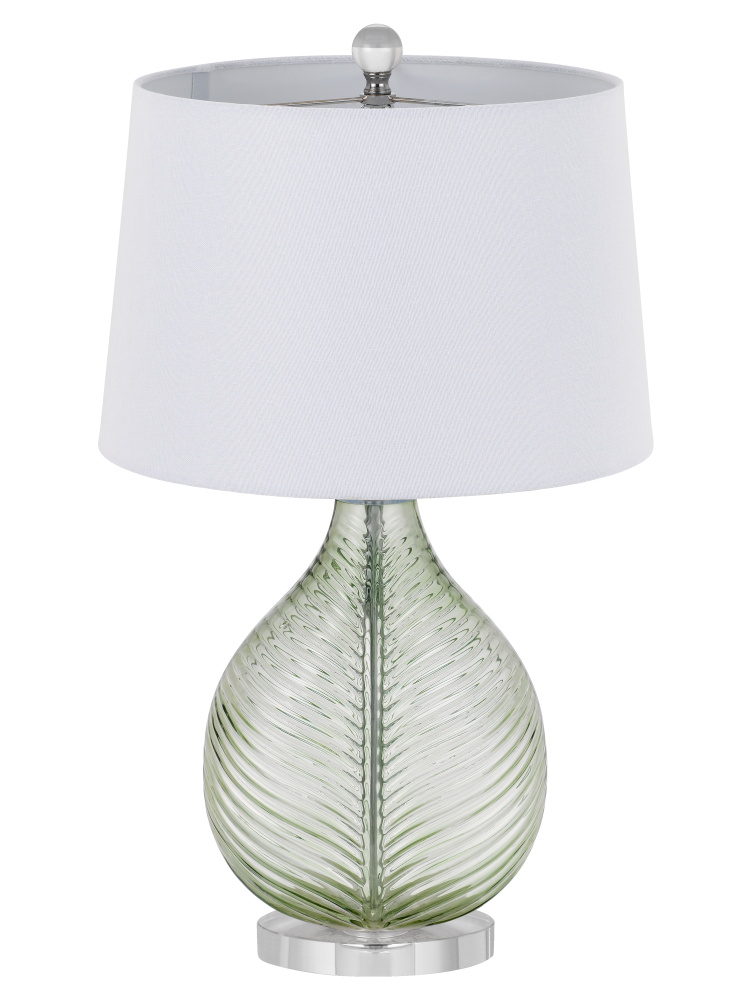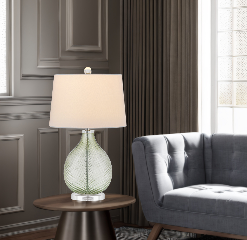 150W 3 way Coral glass table lamp with hardback fabric shade