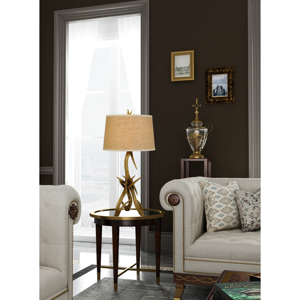 150W 3 Way Drummond Antler Resin Table Lamp With Burlap Shade