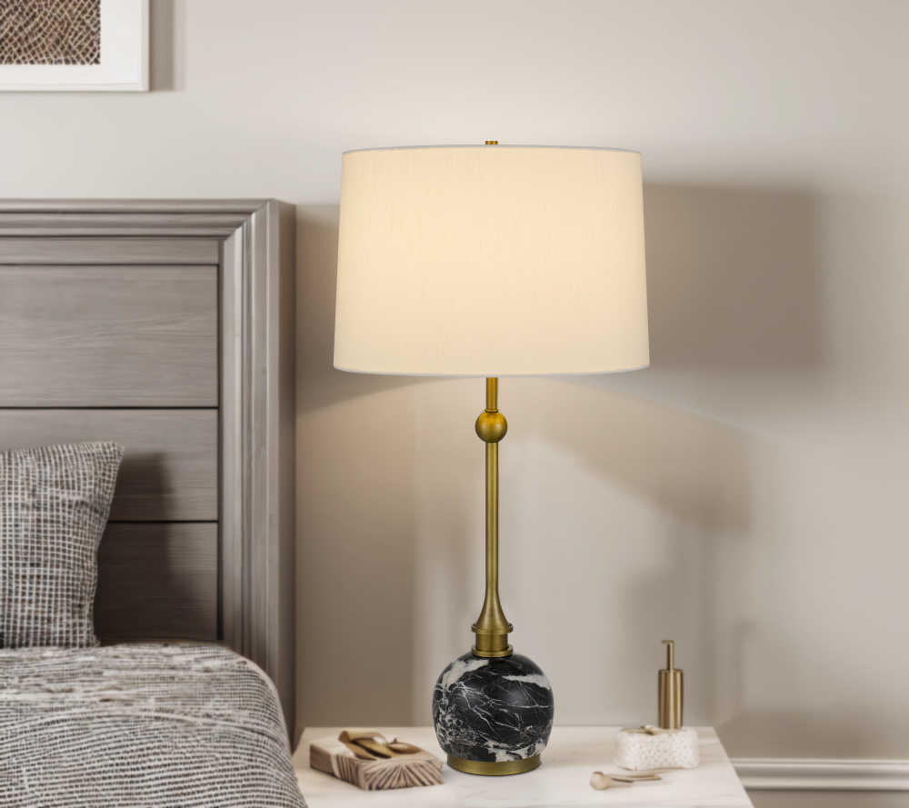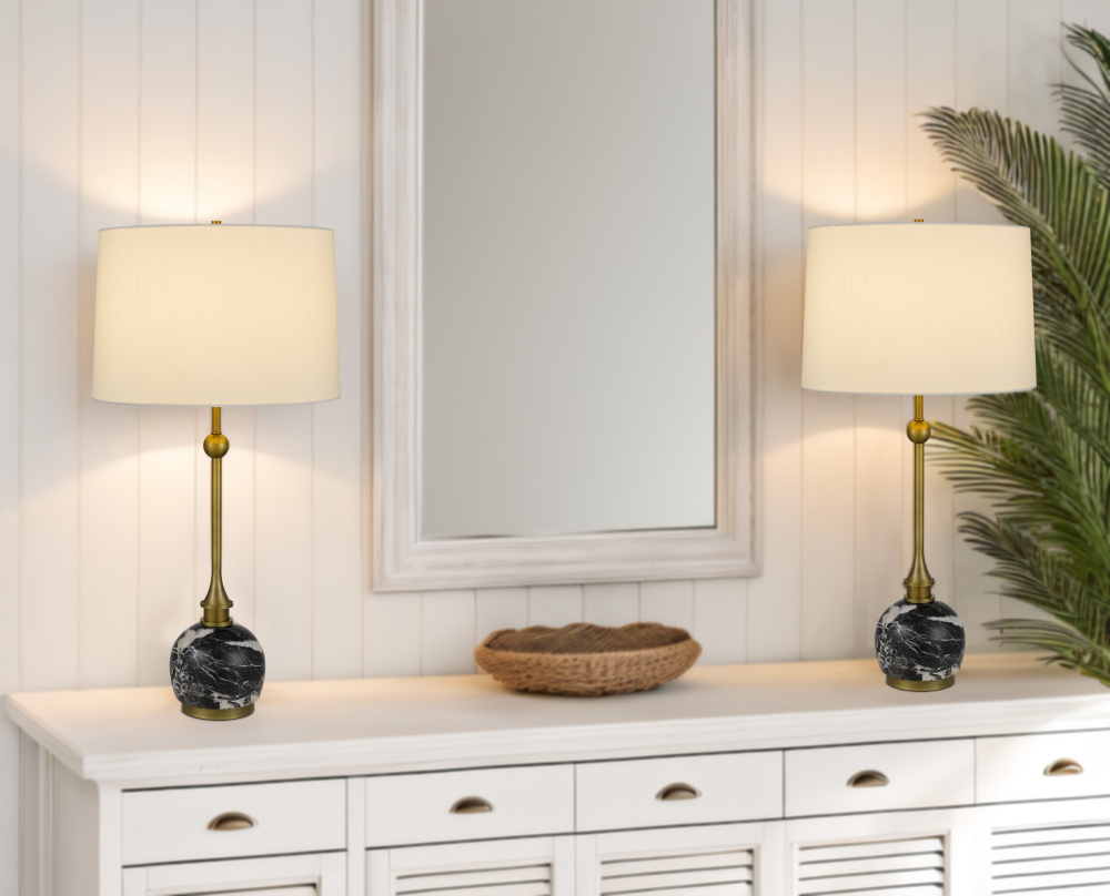 150W 3 way Midlands metal table lamp with marble stone base and hardback fabric shade