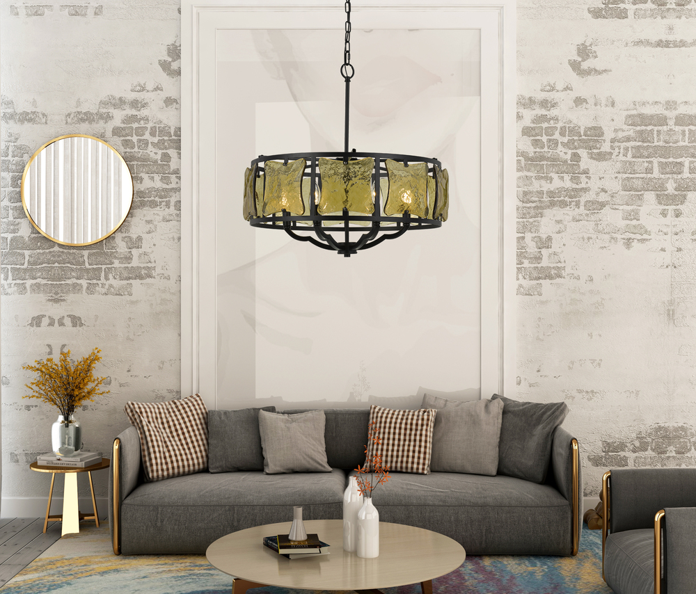 60W X 6 Revenna Forged Iron Chandelier With Hand Crafted Glass