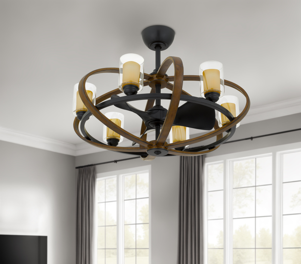 Remote controlled dimmable 8W LED E12 x 6. 6 speed Summervile Ultra Quiet Fan light with updraft