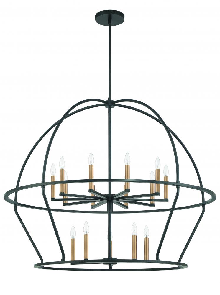 The Abbott linear chandelier presents a simple, streamlined shape and clean lines. The open-concept frame features a metal arch and a sleek, narrow rod with a series of thin bulbs. Mounted above an island or over a dining room table, this fixture appeals to a minimalist sense of style and comes with both white and gold candle sleeves. The Abbott comes in vibrant gold and black finish.