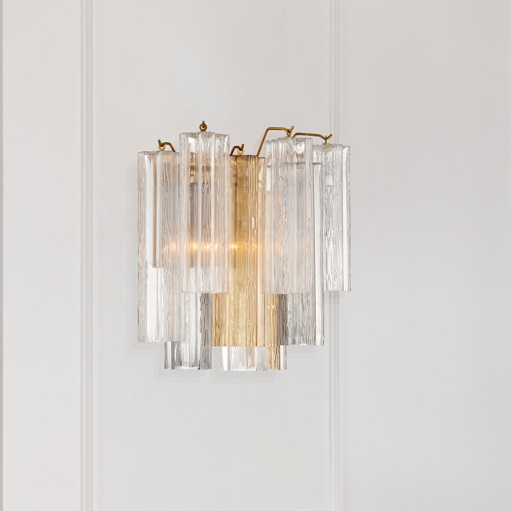 The captivating Addis Lighting Collection is a modern-day interpretation of the iconic mid-century Tronchi chandelier. Inspired by its predecessor's sleek lines and geometric shapes, the Addis features a polished Chrome or Aged Brass metal frame that exudes sophistication and style. Its unique design showcases transparent tiers of textured Tronchi glass tubes, forming a mesmerizing 5-point rounded star shape. Choose from a range of glass colors, including clear, amber, smoke, and white, or the stunning Autumn option, which features a captivating multicolor disposition of amber, clear, and smoke Tronchi glass. The Addis Lighting Collection offers various sizes and finishes, allowing you to find the perfect fit for your space while adding a touch of timeless elegance.