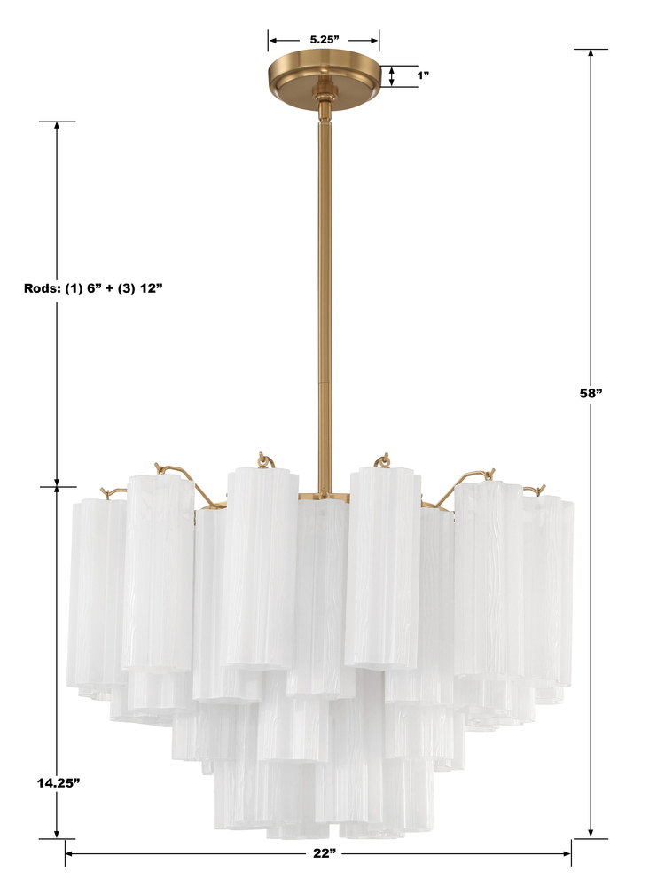 The captivating Addis Lighting Collection is a modern-day interpretation of the iconic mid-century Tronchi chandelier. Inspired by its predecessor's sleek lines and geometric shapes, the Addis features a polished Chrome or Aged Brass metal frame that exudes sophistication and style. Its unique design showcases transparent tiers of textured Tronchi glass tubes, forming a mesmerizing 5-point rounded star shape. Choose from a range of glass colors, including clear, amber, smoke, and white, or the stunning Autumn option, which features a captivating multicolor disposition of amber, clear, and smoke Tronchi glass. The Addis Lighting Collection offers various sizes and finishes, allowing you to find the perfect fit for your space while adding a touch of timeless elegance.