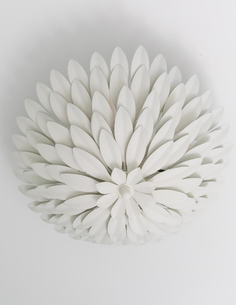 Matte white metal finish pairs well with any décor style. The velvety, non-glossy sheen offers a dramatic contrast to a room.