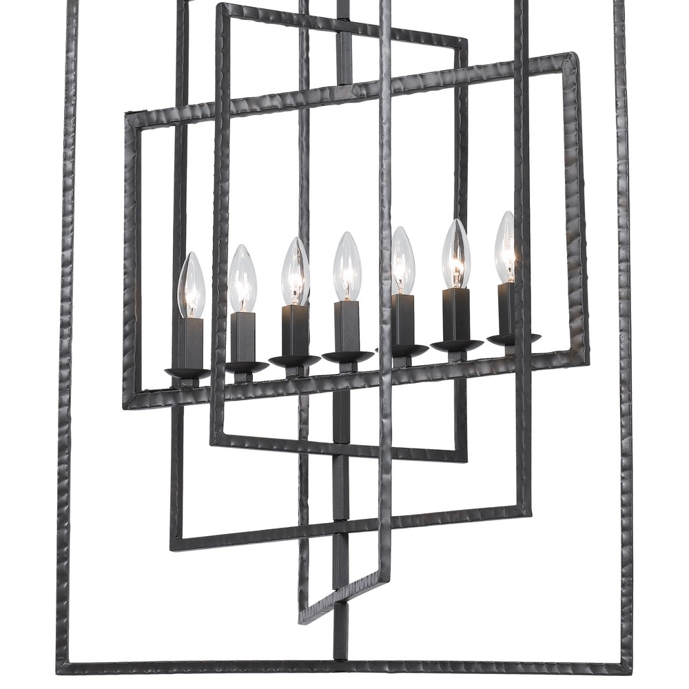 Geometric, moveable industrial iron frame intertwines in the urban Capri collection. The light features clean lines showcasing a minimalistic design yet are a dramatic statement. The raw steel is artfully finished with a hammered pattern to enhance the cool urban design. While industrial, the fixtures can accompany a variety of home design to add a bit of edge.