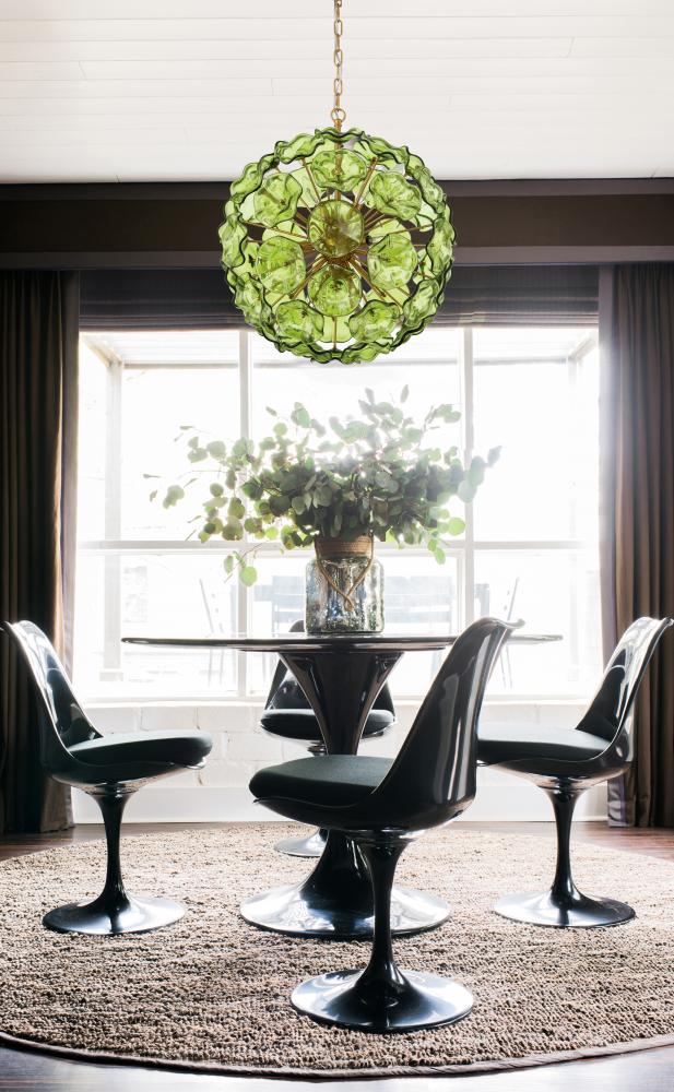The Esme collection is a modern take on the iconic Sputnik design, blending vintage sophistication with a fresh, dynamic twist. Its spherical core anchors an array of brass rods extending outward, culminating in hand-blown art glass shaped like delicate flower petals. This striking piece transforms a room, offering a different visual experience whether it's illuminated or not—sophisticated and bold when off, subtly whimsical and glowing with warmth when on. Esme's timeless charm and playful elegance stand out in any space.