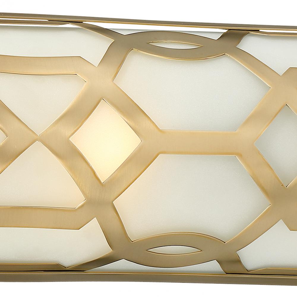 A striking geometric statement, the Jennings collection pairs Libby Langdon's signature classic design with a modern flair. The Jennings is an open, graphic metal design with a white glass shade. A perfect marriage of classic and modern creating the ideal elegance.