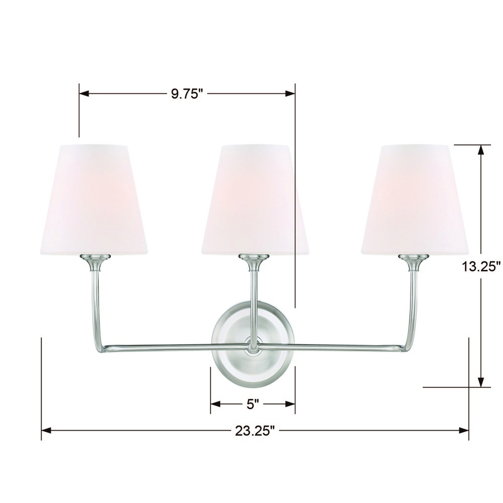 The Sylvan wall sconce offers a simple yet sophisticated design to brighten up any space. Presented in a one-light, two-light or three-light option, the circular backplate has gracefully upward sweeping arms, complemented by a tapered glass shade. The Sylvan wall sconce adds a touch of tailored elegance and modern styling to any interior.