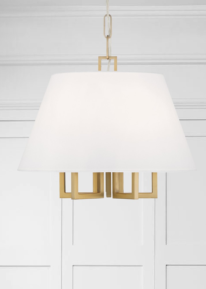 The signature Libby Langdon attention to detail is apparent in the Westwood collection. This light features an angular frame topped with crisp white shades for an electric yet modern design. Perfect for a dining area, living room or even entry way, this fabulous light will add the perfect accent to any space.