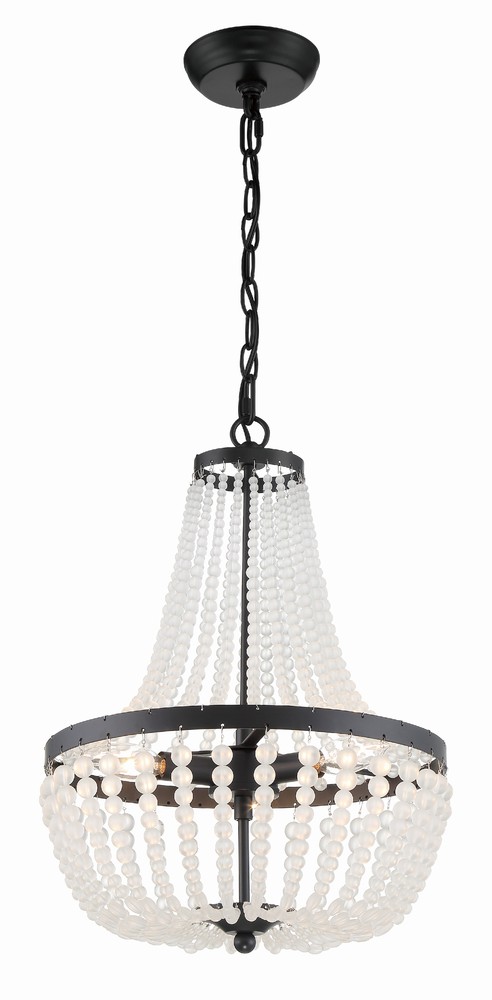 A traditional Empire shape meets modern elements in Crystorama's Rylee Collection. A circular-shaped hand-painted frame gives this fixture a vintage, distressed look, while the beads lend to a bohemian style flare. The Rylee creates a rich visual impact on any space in a perfect combination of texture and materials.