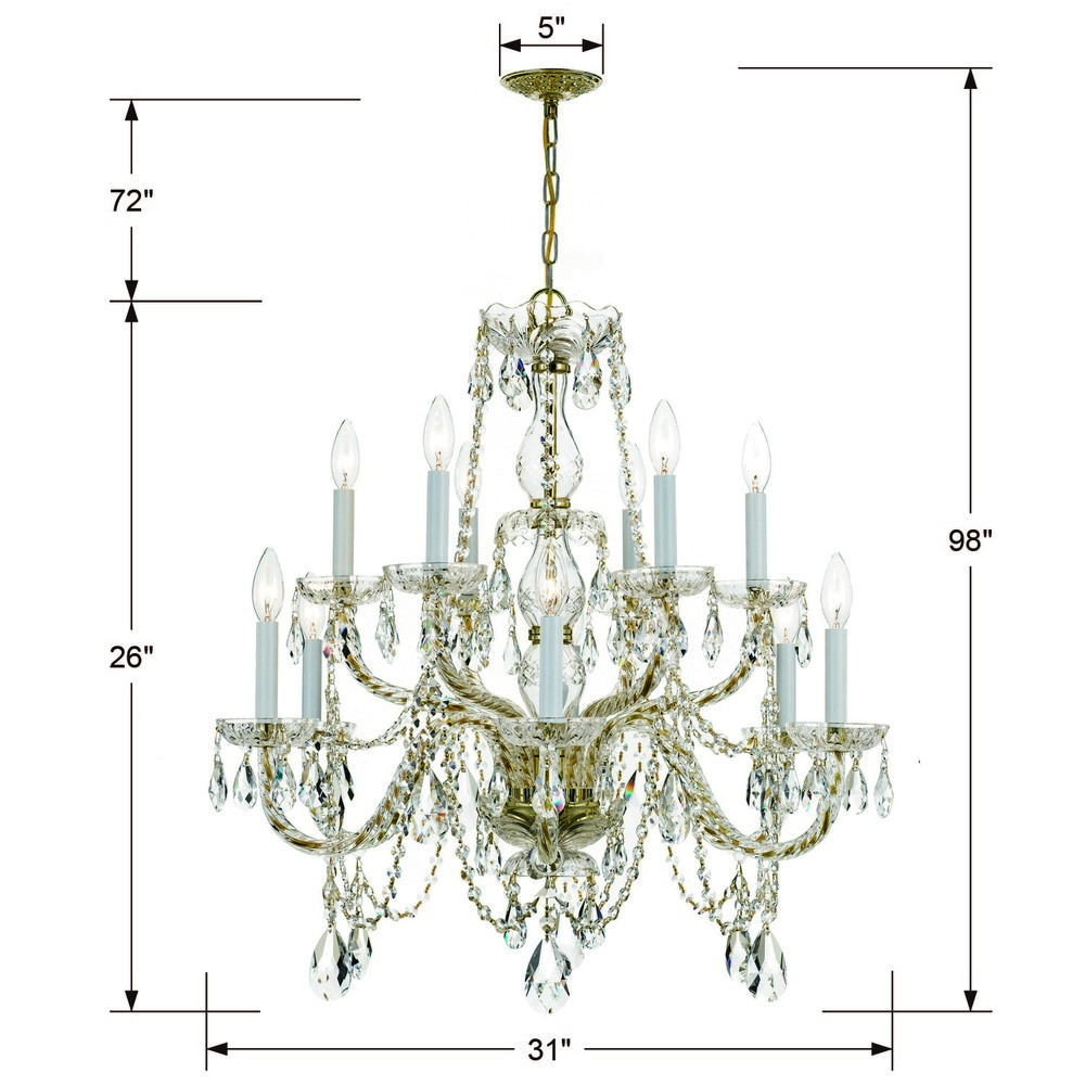 Traditional Crystal 31'' Italian Crystal Polished Brass Chandelier