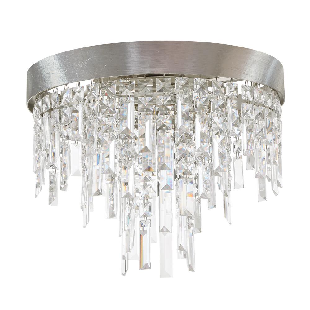 The thick simple metal frame of the Winfield is dramatically dressed with a cascade of crystals.