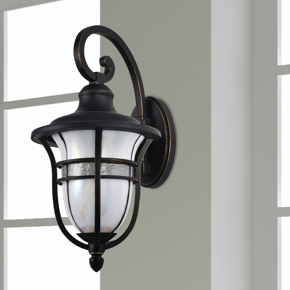 Our lovely Kenya Outdoor Wall Sconce will add charm and appeal to any outdoor area in your home. The inverted bell shade is crafted of light amber glass that will cast a warm glow when the sconce is lit. The shade is encased in an open metal frame that is finished in deep Golden Black. Kenya hangs beautifully from a round metal backing plate and gracefully scrolled wall arm, both finished to match in Golden Black. Ideal for external doorways, our Kenya Outdoor wall sconce is as durable as it is beautiful and is guaranteed to keep your home’s exterior beautifully and safely illuminated for many years to come.