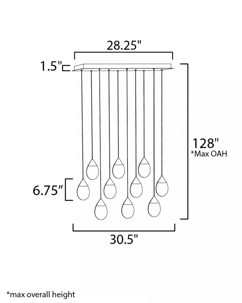 Suspended from slim cords, drops of blown glass encase a recessed LED light source casting light along the thick bottomed glass. Available in Polished Chrome with clear glass or Matte Black with Mirror Smoked Glass, this simple design adds a statement to l