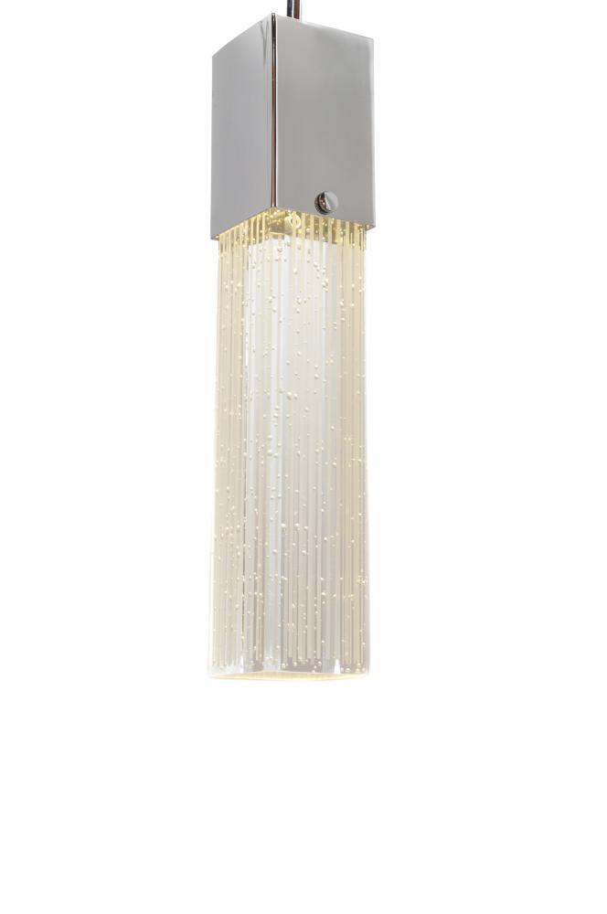 The Fizz Collection's effervescent bubbles encased in rectangular glass cubes come to life when illuminated by high output LEDs. The etched lines add linear detail as they extend from the Polished Chrome fitters.