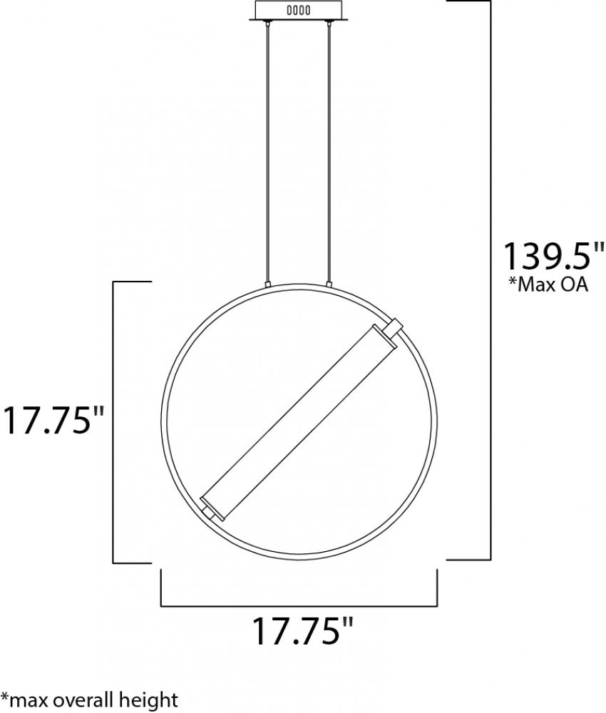 A ring suspends a tube of LED light evenly diffused through opal white acrylic. A striking combination of soft gold and black bring boldness to the collection. By adjusting the rings on the chandeliers, the light element can be positioned horizontally or a
