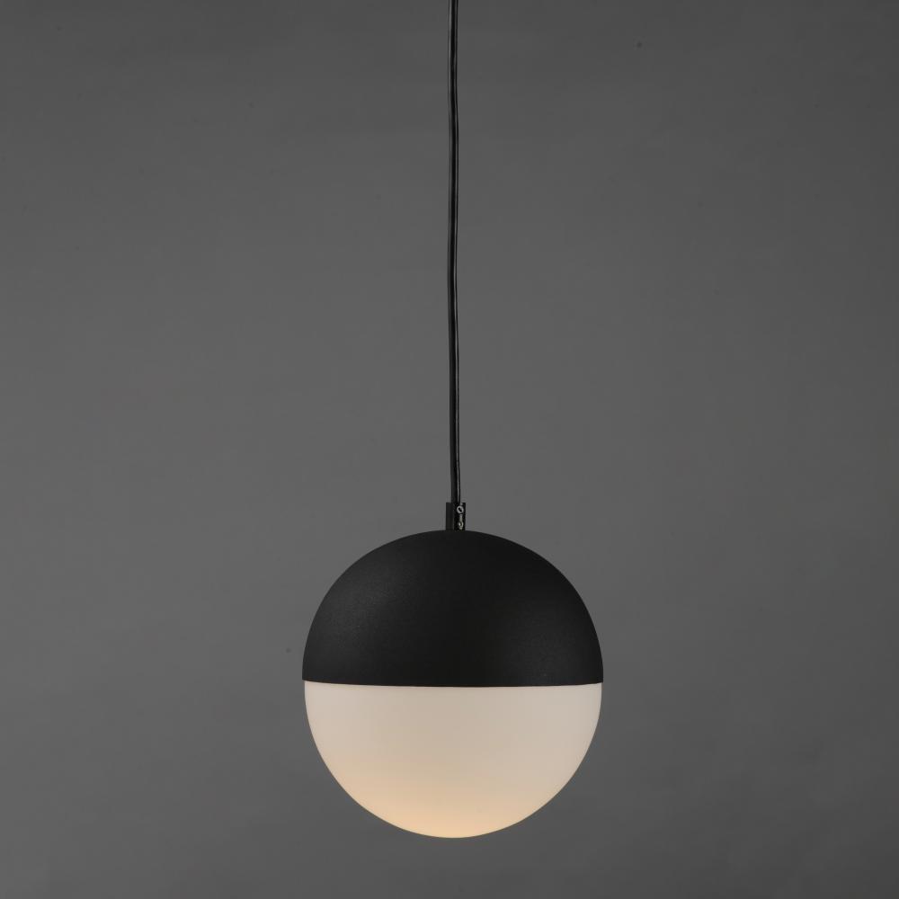 Spun metal semi spheres finished in Satin Nickel, Metallic Gold or Matte Black, cap a Satin White glass shade. Installed into each fixture is an omni-directional LED bulb that evenly illuminates the glass while providing long life operation.
