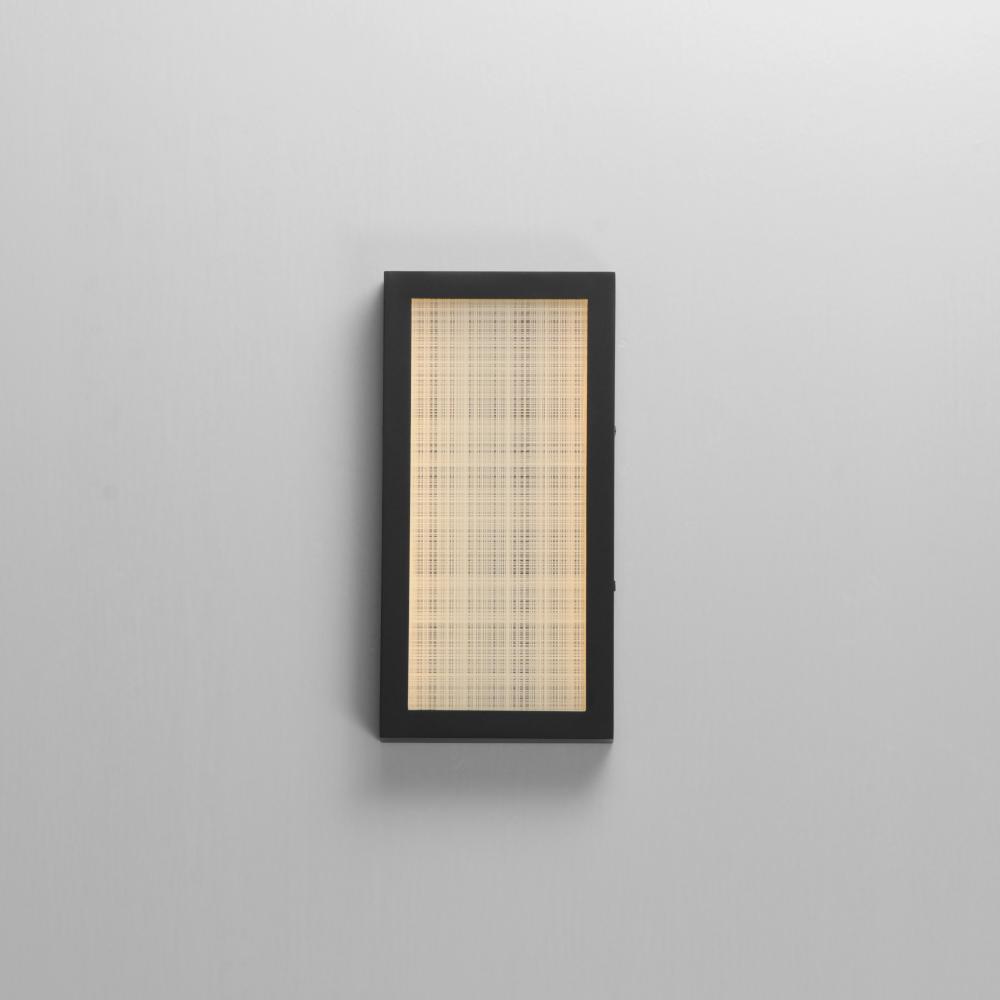 An internally illuminated shadow box is encased in glass with a tartan plaid pattern engraved to mimic linen. The back plate features a polished stainless steel plate adding an almost infinite dimension to the pattern. Constructed of aluminum in Matte Blac