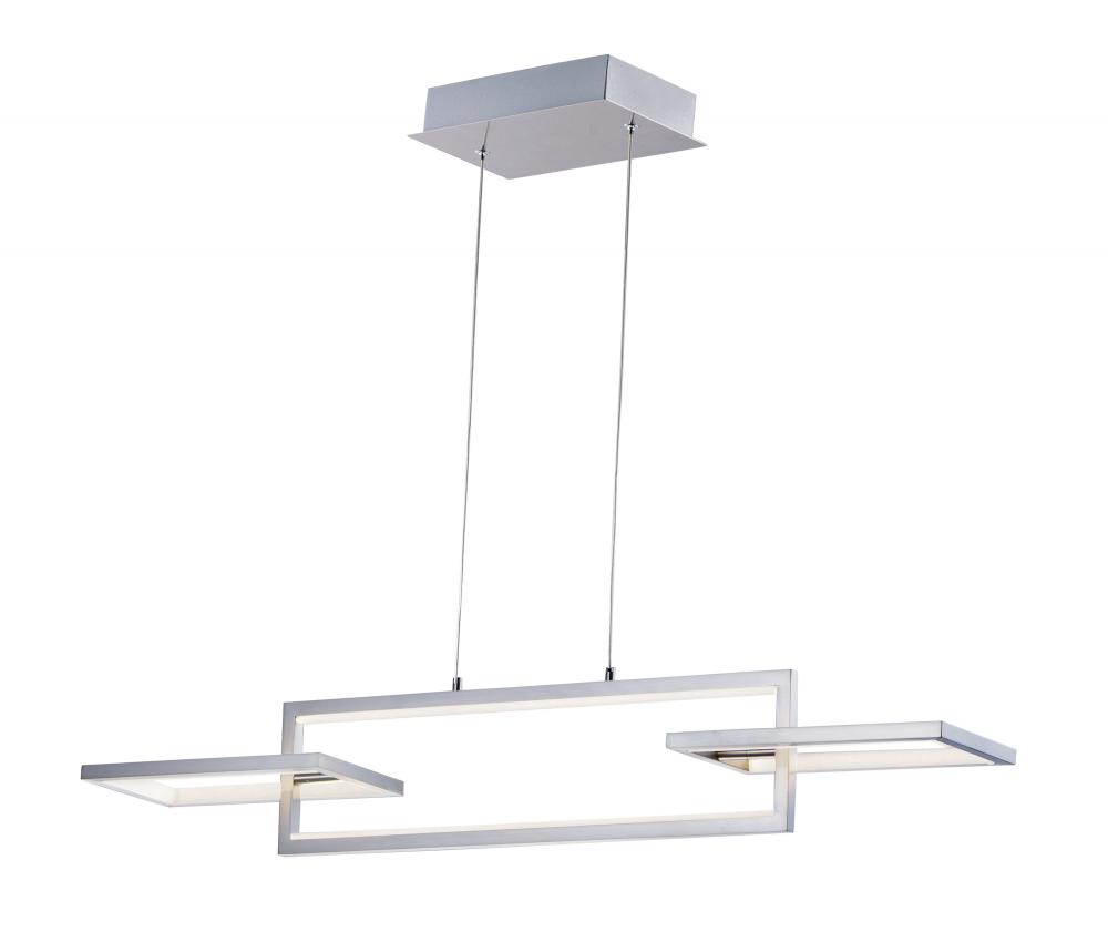 Chain links of Satin Nickel are illuminated internally by encased LED light. The suspending frames are adjustable to create different expansions of the linear pendants and flush mounts. A coordinating wall sconce completes this streamlined contemporary col