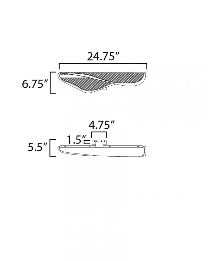An undulating shape softly curls along its center to create an organic form constructed of a single panel of transparent acrylic. Further enhancing the form is the captivating effect of the frosted band around the borders and the patterned etching on the a