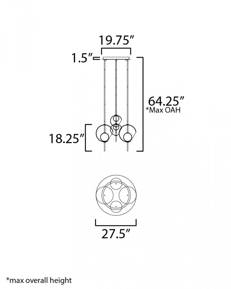 Class and character describe these unique LED light pendants. Start by taking a spike in Natural Aged Bass and stick it through multiple layers of glass globe shades. The outer layer is an oversized Clear glass with a slanted opening exposing a smaller Whi