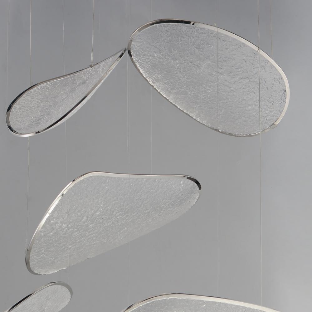 A triumph of scale, craft, and light, Moonscapes transforms celestial inspiration into a breathtaking installation. Monumental in form yet ethereal in presence, each irregularly shaped panel evokes the cratered terrain of the lunar surface with dramatic te