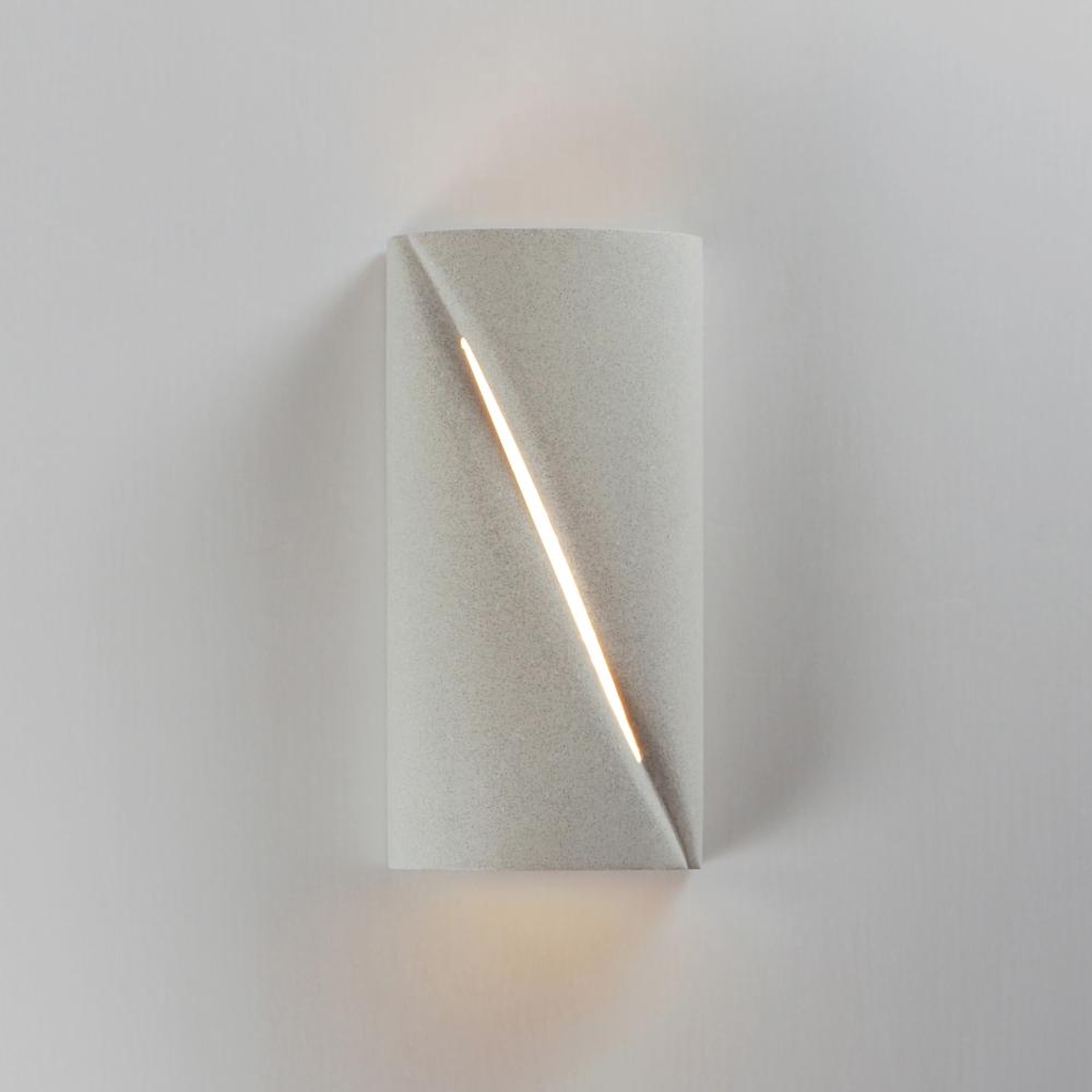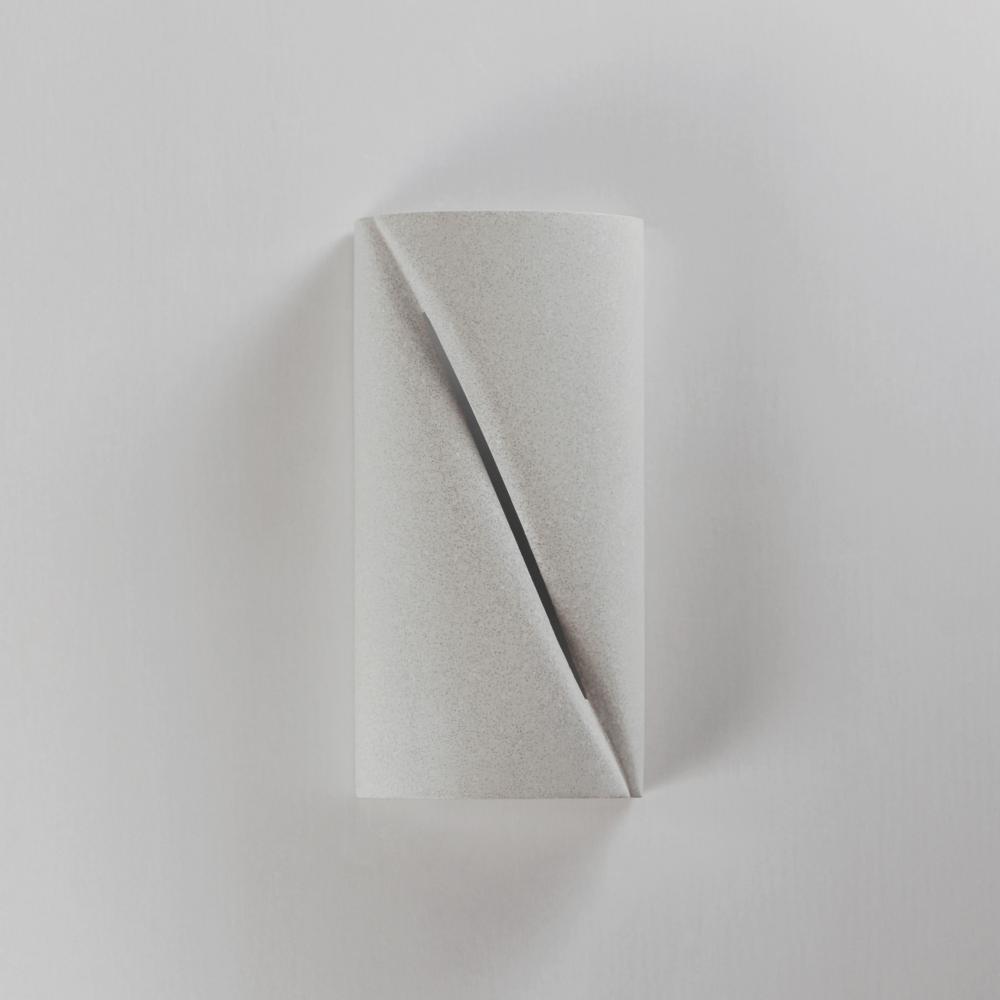 Softly rounding forms are constructed of outdoor-rated concrete molds. Finished in Greystone or Chalky White, these sconces are both playful and sophisticated. A diagonal reveal along the fixture's body emits light while also casting light above and be