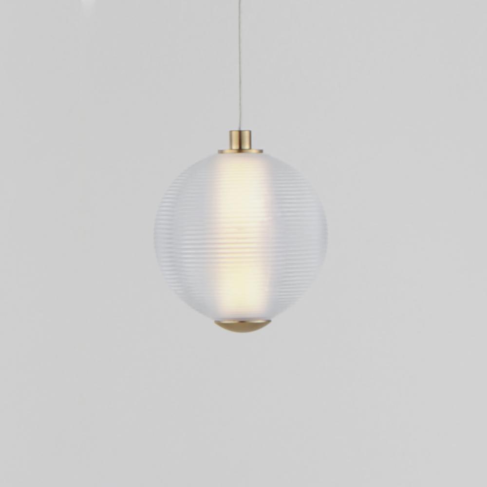 Ablaze with omnidirectional LED light radiating from the center of perfectly ribbed spheres, the lustrous glow within accentuates the repeating pattern on the glass' exterior. With minimal hardware visible outside the glass, select from Polished Chrome