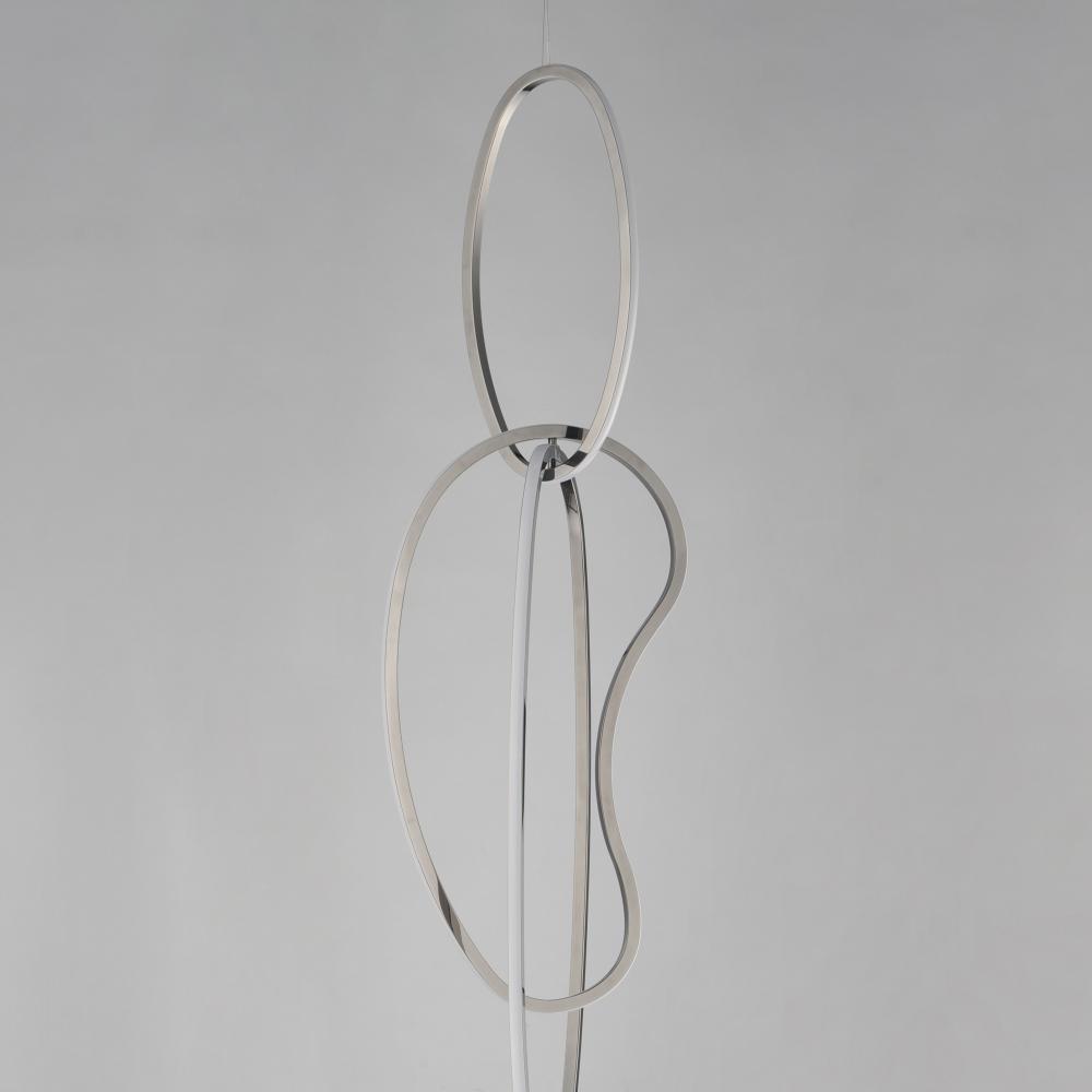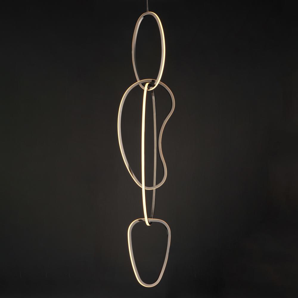 Abstract shapes of stainless steel are finished in Brushed Champagne or Black Chrome and intersect to create an intriguing sculpture of light. Unity provides both art and illumination for those searching for a unique lighting piece.