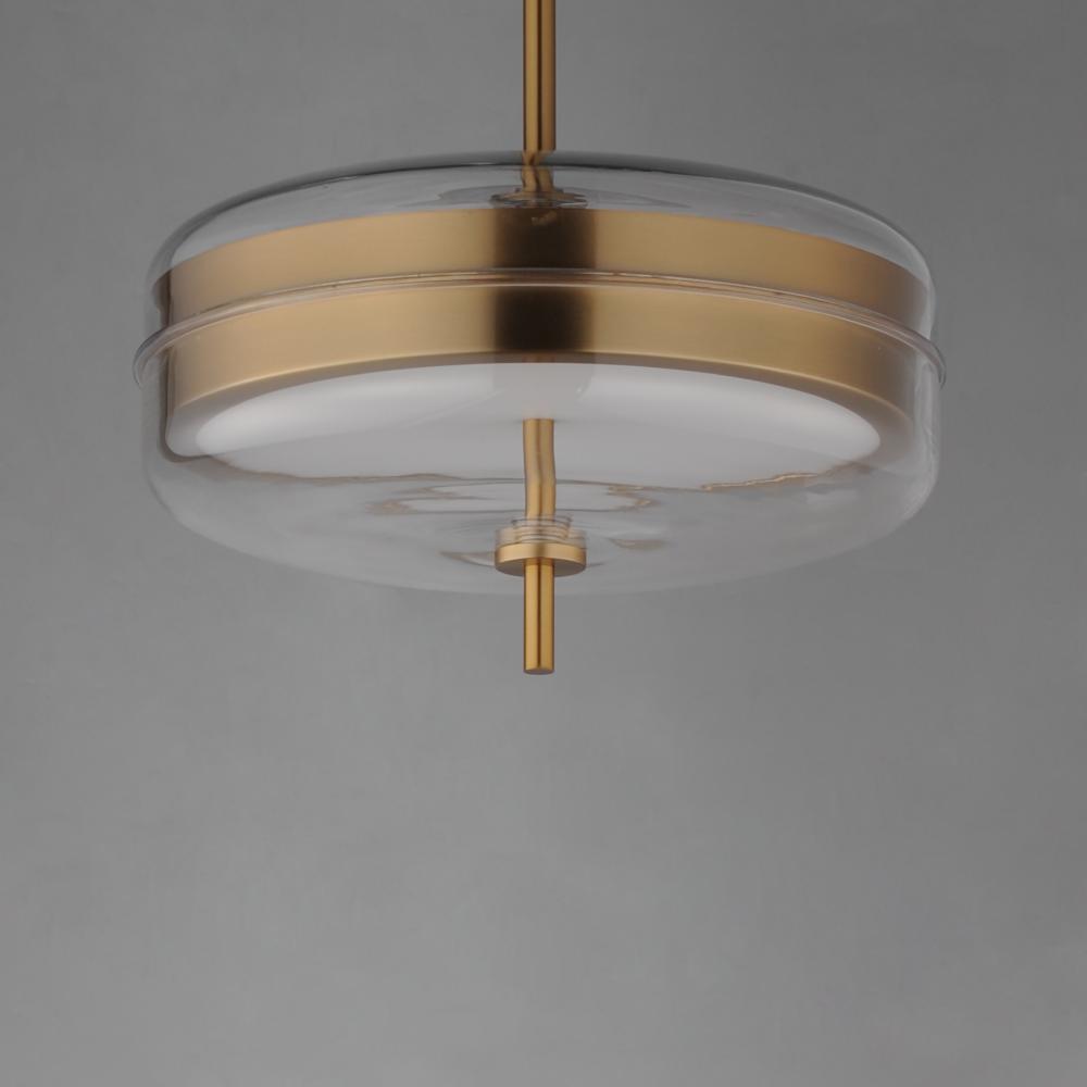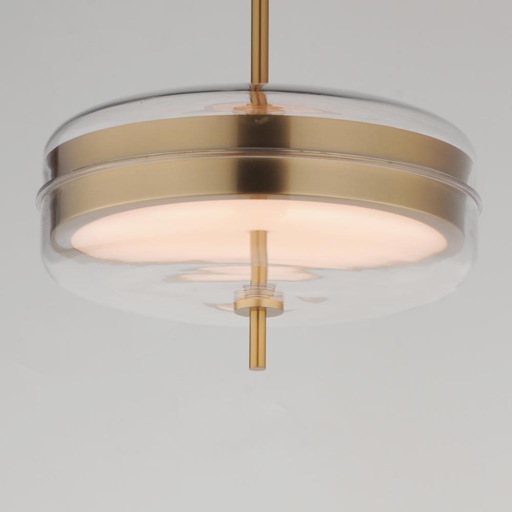 Shallow glass domes encase edge-lit LED panels, creating a captivating play of light that highlights the void within each fixture while delivering evenly distributed illumination both upwards and downwards where applicable. A meticulously crafted frame con