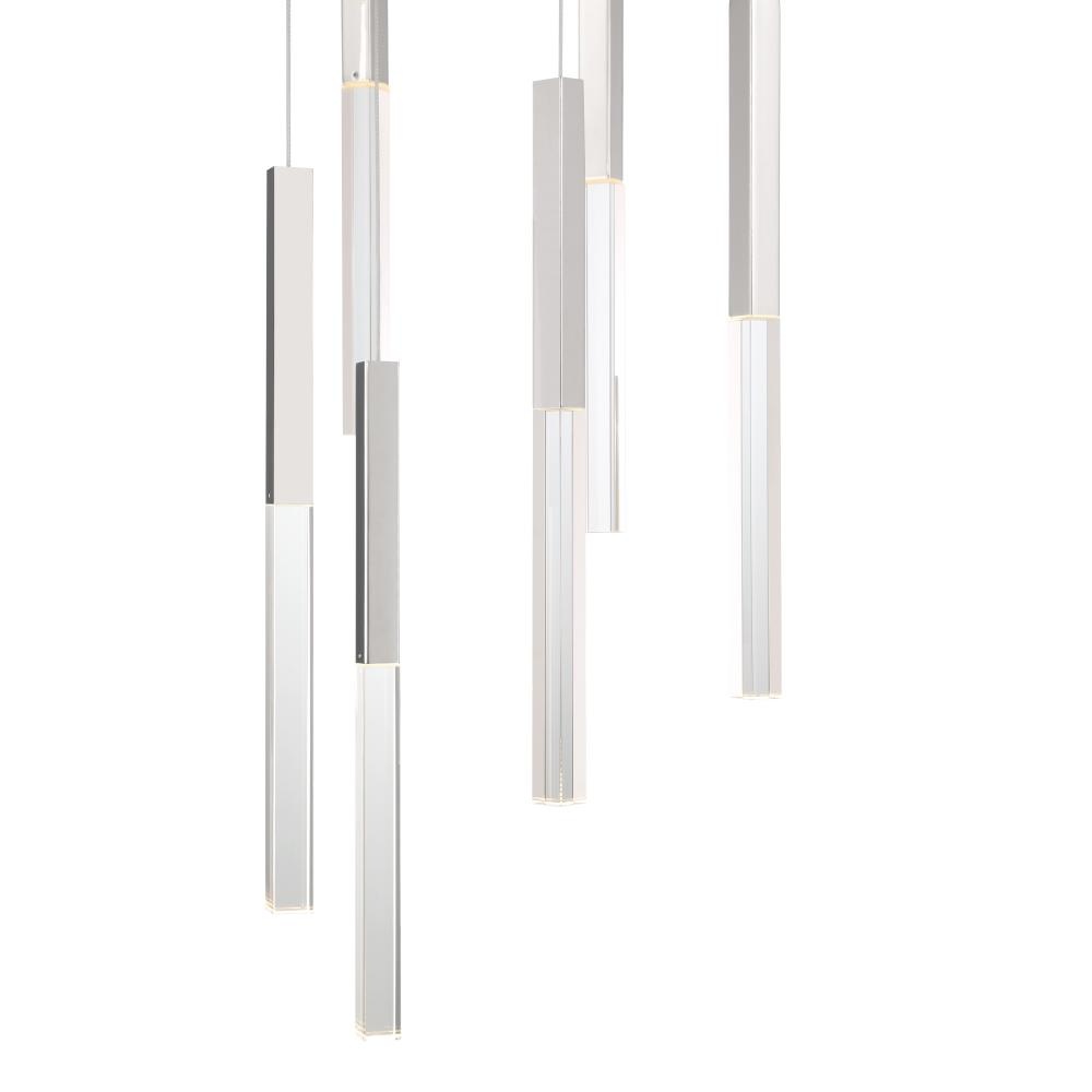 Its crystal rectangular prism and sharp beveled edges create brilliant illumination to the Benicio collection. Solid glass vertical spires cast vivid refractions across wall and ceiling surfaces. The thin simple geometric shape lends itself to luxurious and contemporary environments while providing a dual LED light source.