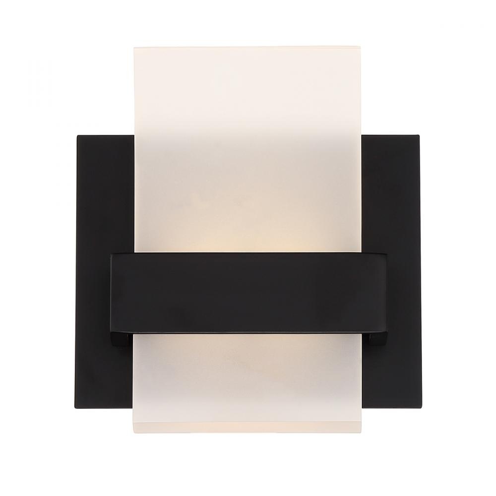 A frosted acrylic prism is nestled in a chrome frame structure exuberating modern excellence. A strong architectural form is accentuated by the strong lines in its design.