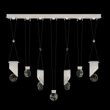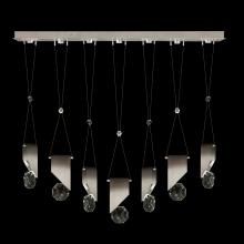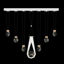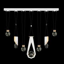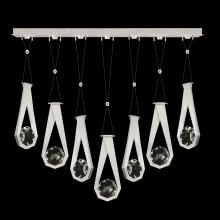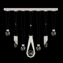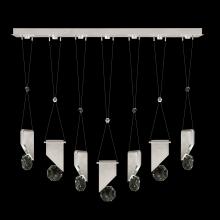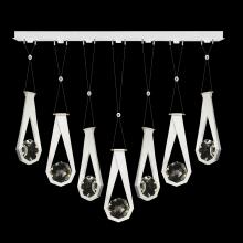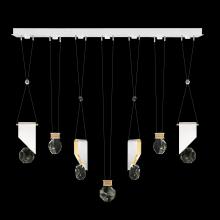 Seven-drop linear pendant inspired by the sophistication and versatility of necklace charms. This collection empowers you to curate your unique piece with its five exquisite finishes and four distinct charm designs meticulously crafted using opulent faceted optic crystal. Each charm shines like a gem, captivating attention. Whether you desire the delicate dance of light reflecting off the crystal or the functional illumination from above, Aria's integrated LED lights bring your vision to life.