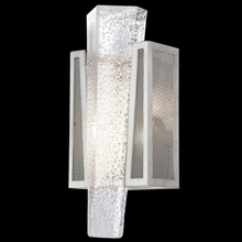 A transformative element of classical architecture has been captured in cast glass by highly skilled artists in our Miami studio. All available in silver leaf or gold leaf finish, with either white textured linen or metal mesh. Sconce shown in gold leaf finish with white textured linen.