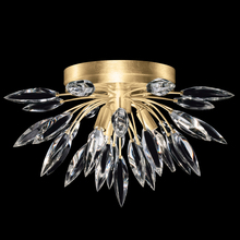 Flush mount in silver leaf finish with graceful bouquets of faceted crystal lily buds that create a naturally elegant lighting effect.