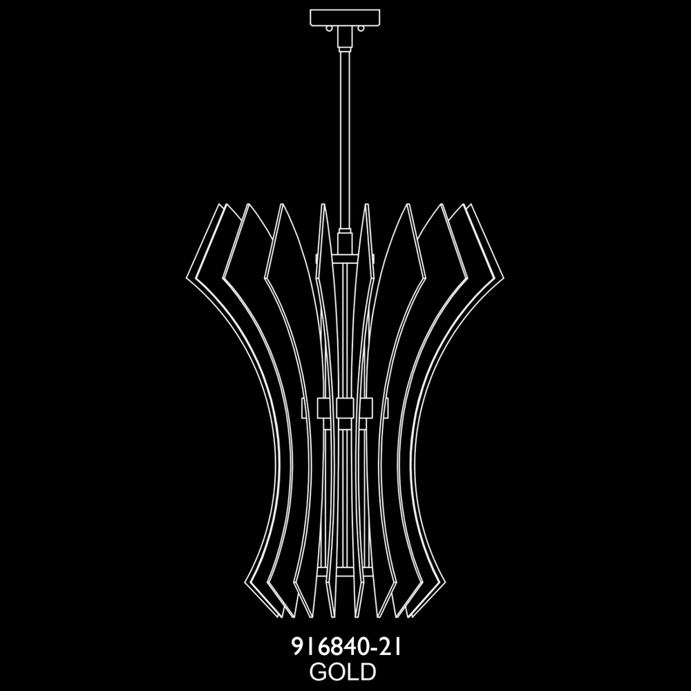 Gold leaf “up” LED pendant featuring strikingly carved and arrayed crystal planes. Contemporary in form and silhouette, these sculptures of metal and light offer an ordered sense of complexity as they introduce crisp illumination, sparkle at every angle, and the color-infused prismatic brilliance of multi-faceted glass works. Features downlight on all configurations. Suitable for vaulted ceiling with adapter, sold separately.