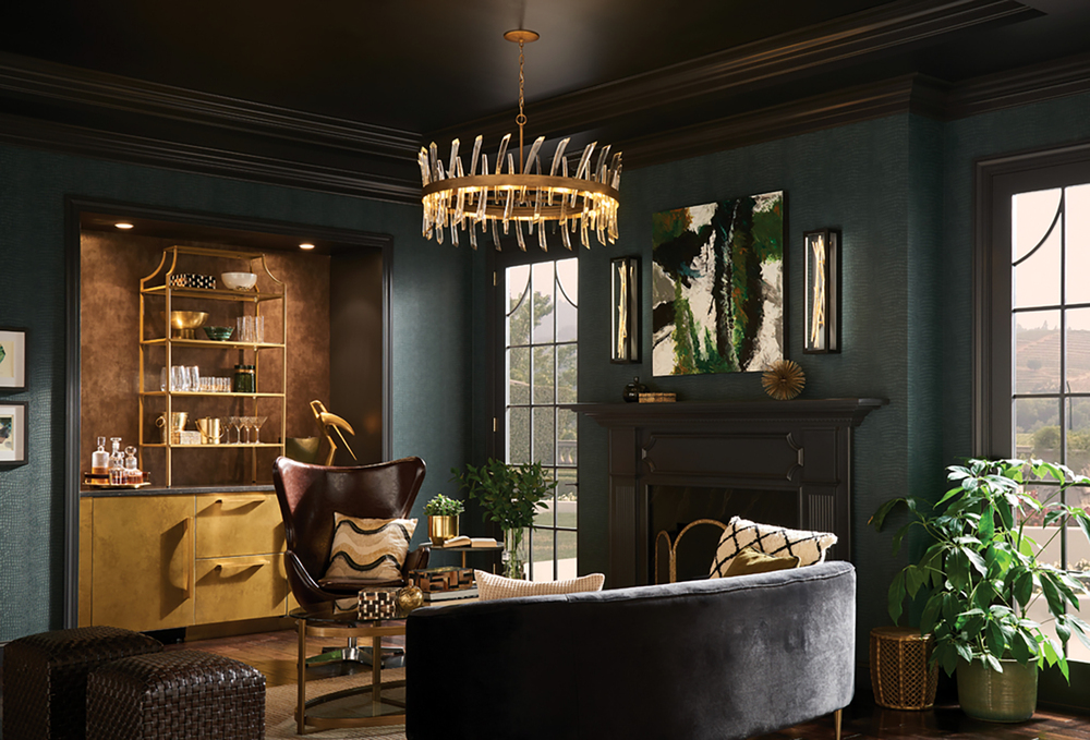 A compelling design that captivates from any angle, the Revel family gleams with sophistication. Luxurious crystal rods are honed into unexpected asymmetrical formations to produce an organic elegance that is both raw and refined. Revel’s linear and circular chandeliers are available in both Burnished Gold and rich Black finish options.