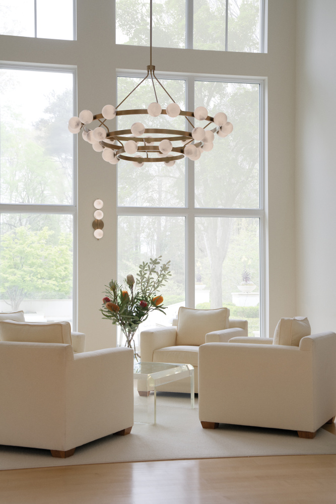 Selene is what dreams are made of. Swirled glass globes dance along the silhouette, providing an enticing, ambient glow and attracting attention in all the right ways. Selene indulges in the details and revels in the spotlight, projecting a strong confidence in modern design.