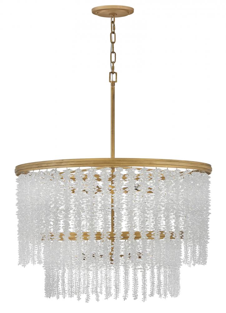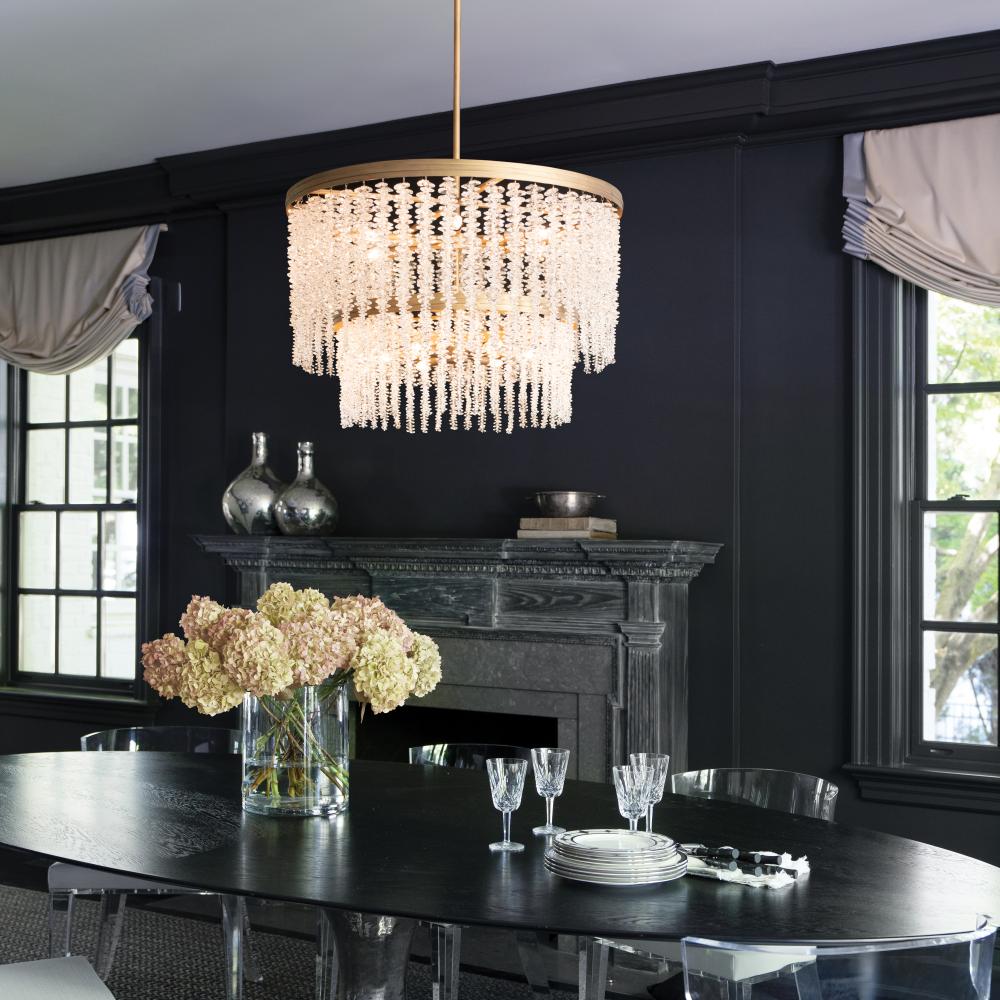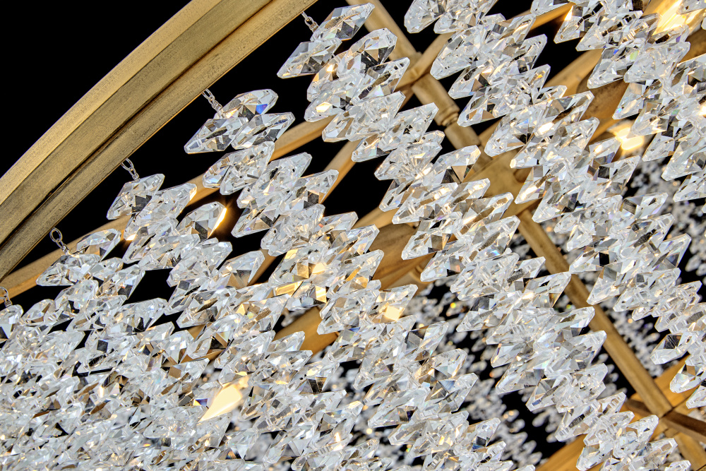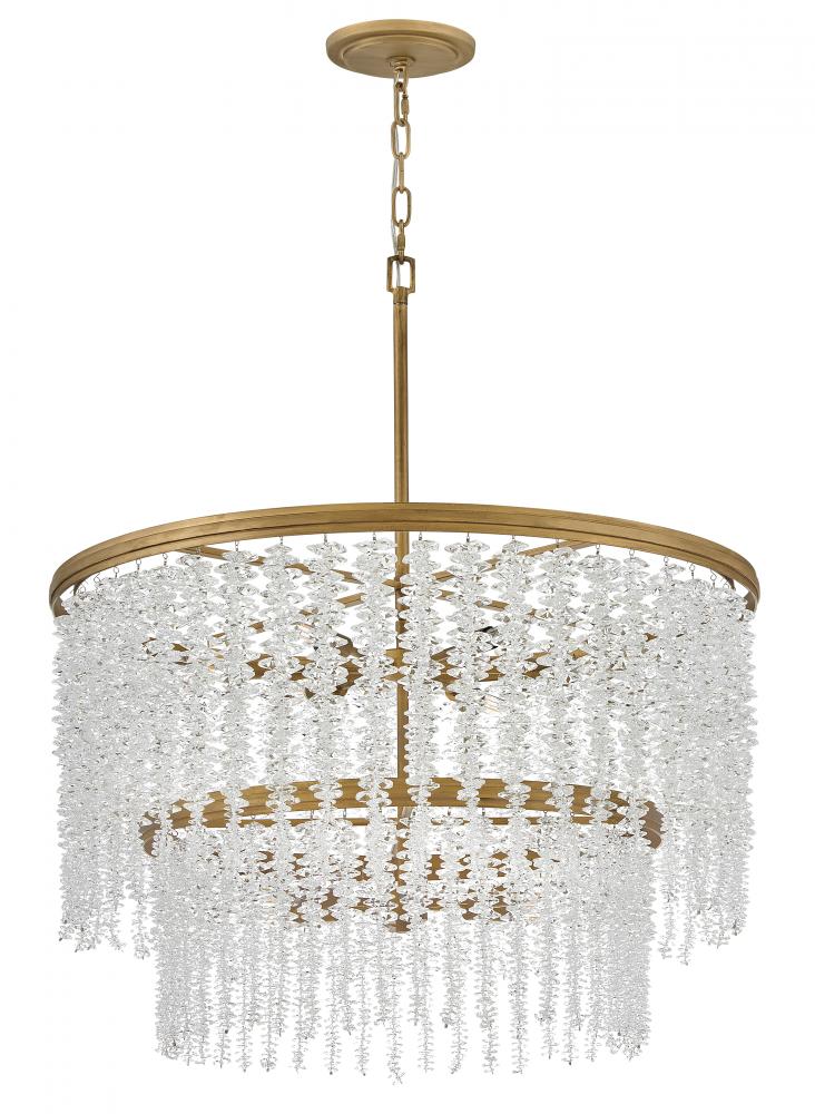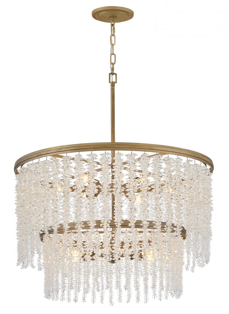 Dripping with glamour, Rubina’s magnificent shade is crafted from individually hung strands of sparkling crystal. A traditional tiered frame accentuates every beautiful refraction with its Burnished Gold finish.