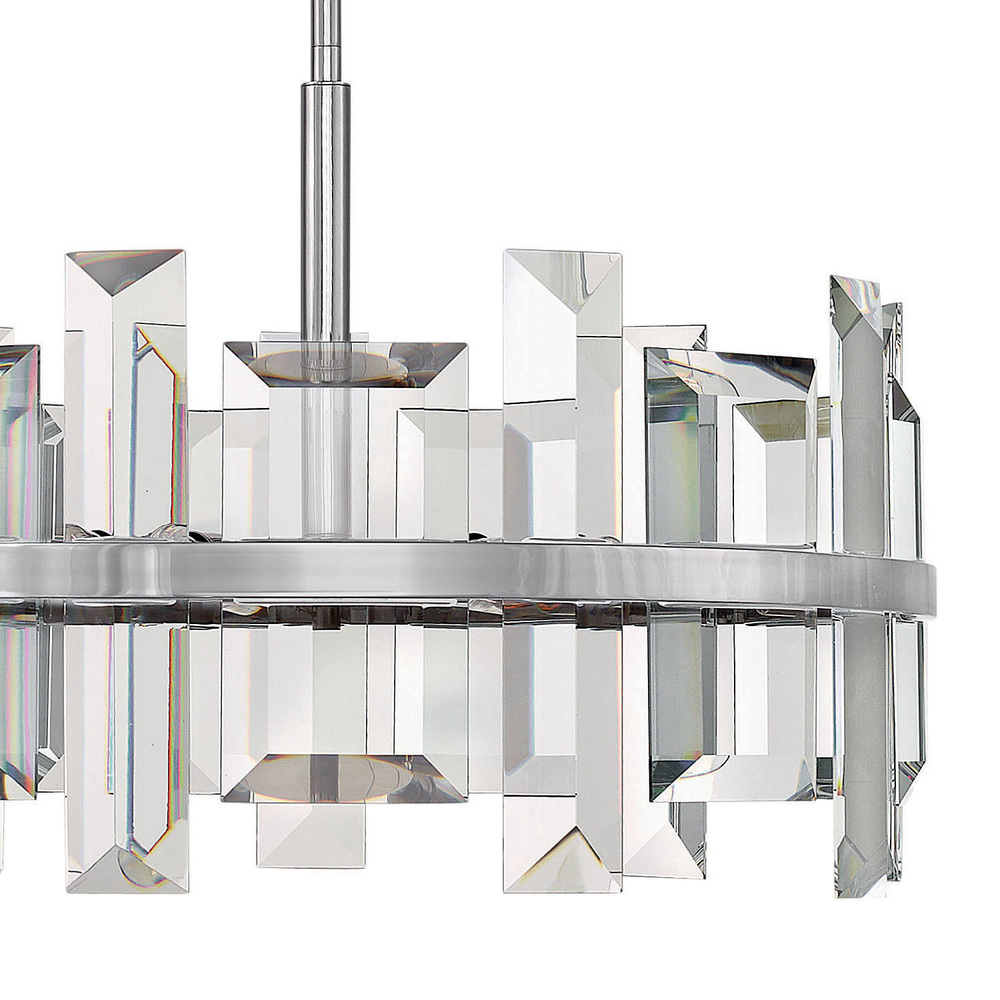 The luxurious composition of Odette's modern design forms a statement-making jewelry piece, certain to be the center of attention. Emerald cut, solid glass crystal panels add breath-taking sparkle. Odette is offered in a gleaming Polished Nickel or finish.