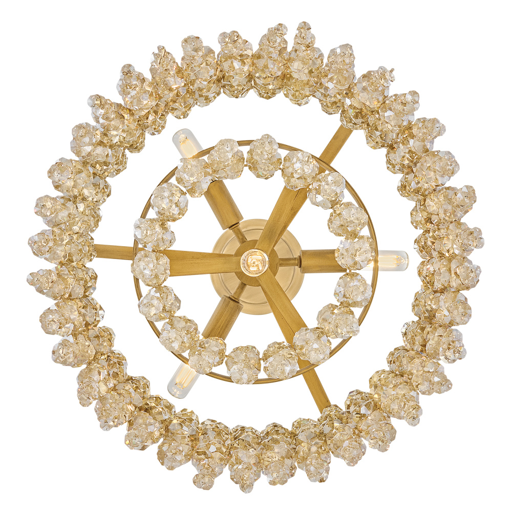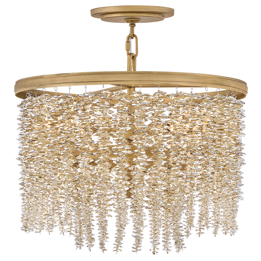 Dripping with glamour, Rubina’s magnificent shade is crafted from individually strung strands of sparkling crystal. A traditional tiered frame accentuates every beautiful refraction with its Burnished Gold finish.