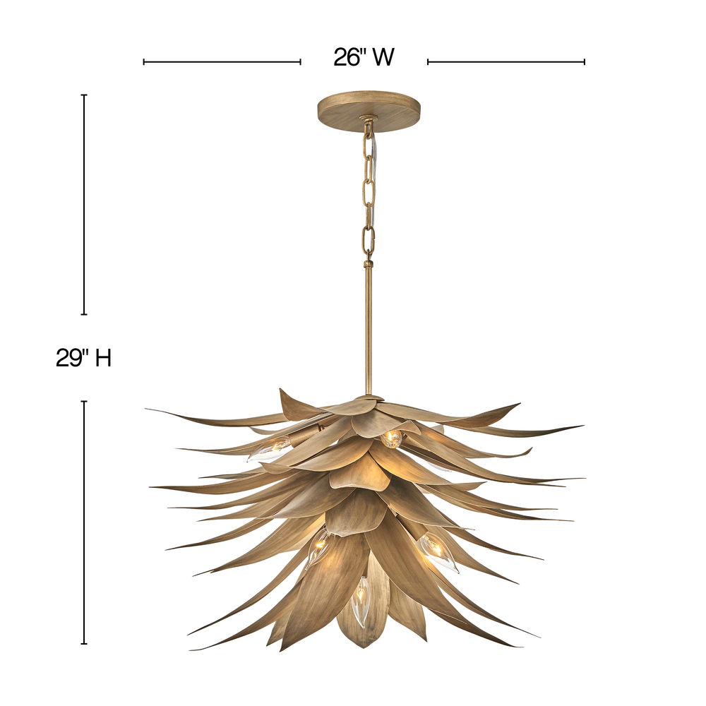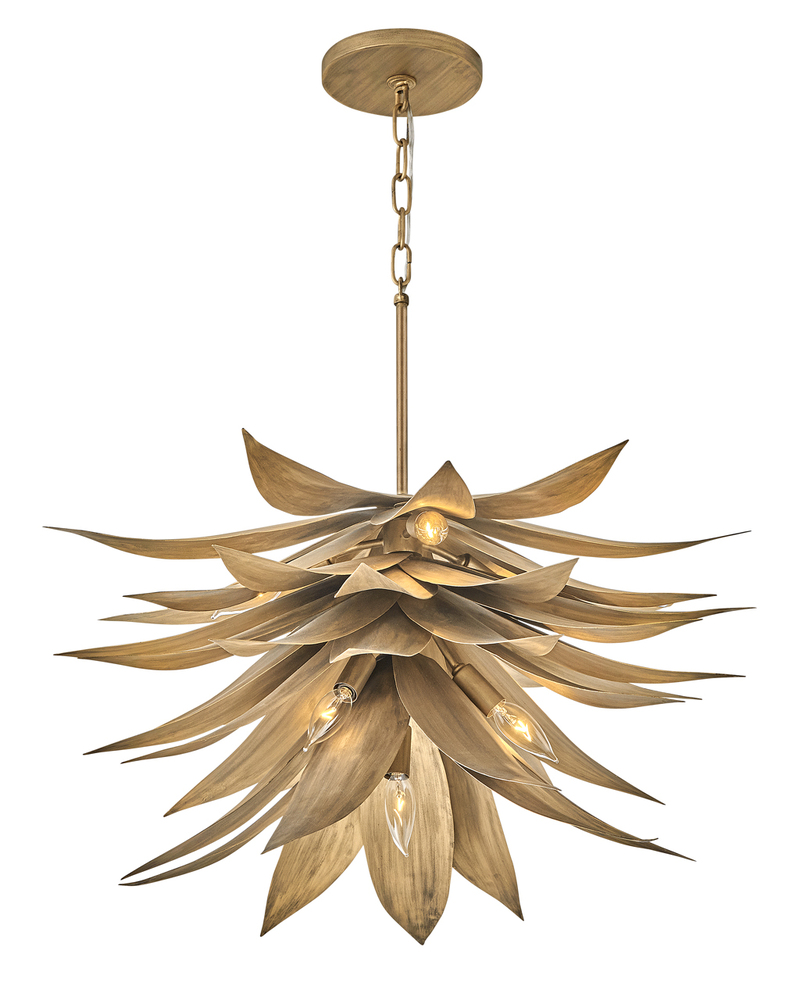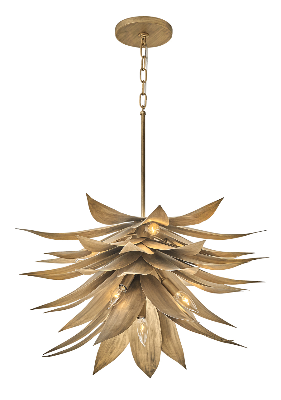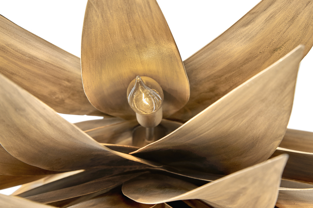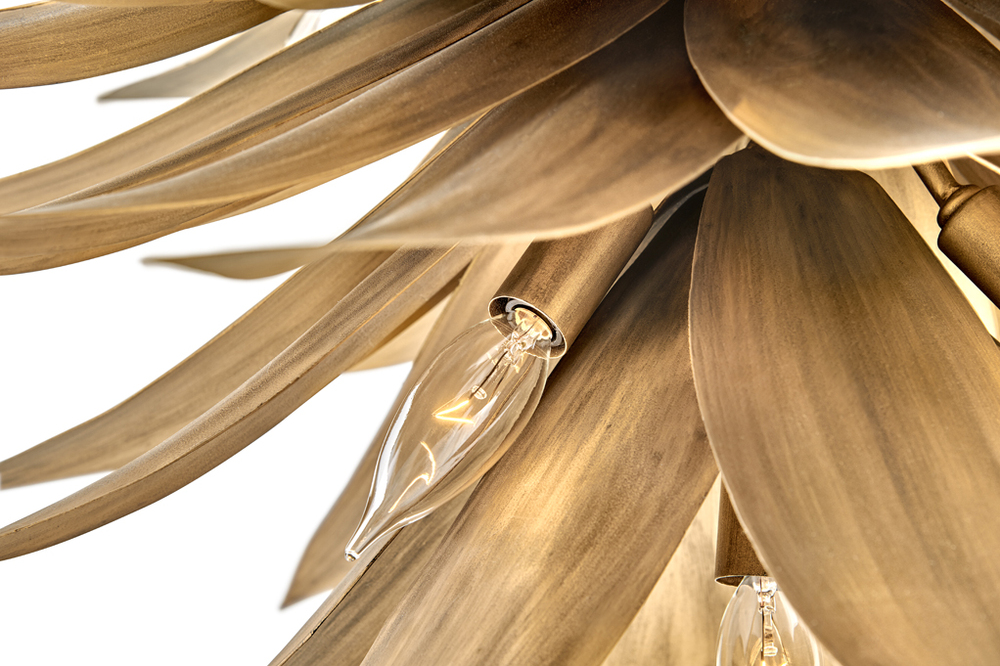 Agave uniquely blends form and function with its extraordinary hand sculpted, leafy layers. Inspired by the agave plant, this fountain-like silhouette captivates with a distinctive nature-inspired design brought to life in an eye-catching Burnished Gold finish.