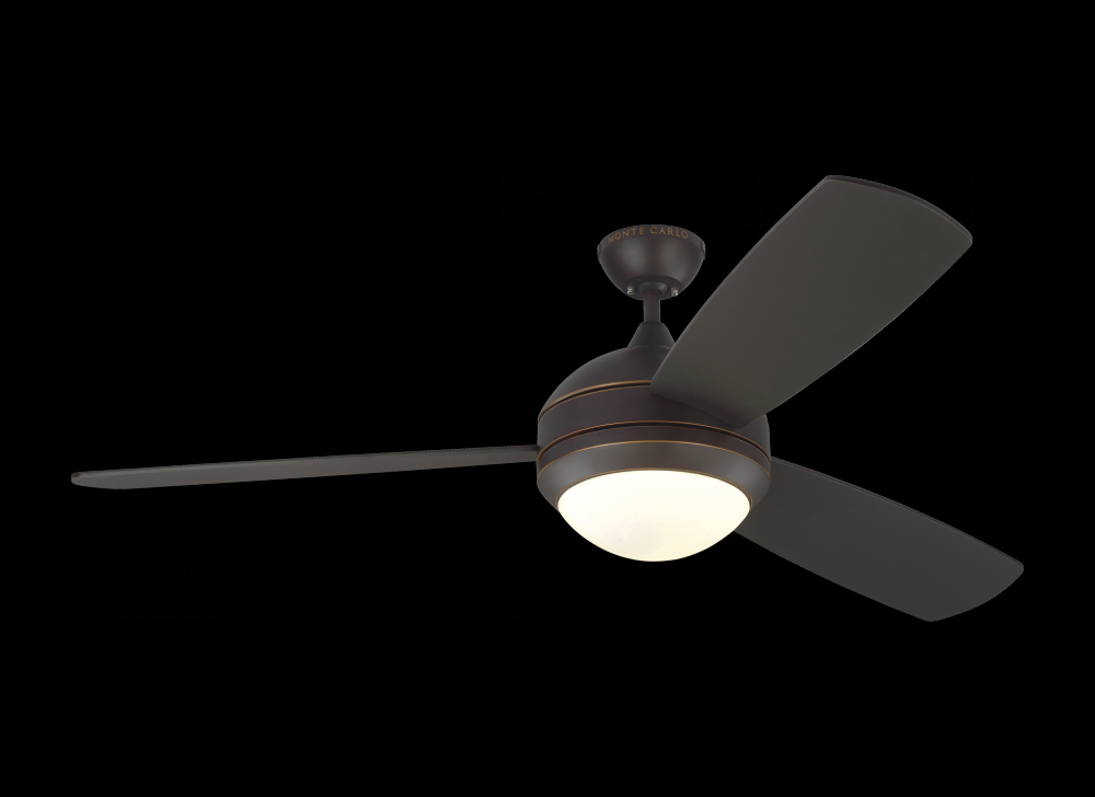 The Discus Trio 58 LED - Roman Bronze in roman bronze features a 172.0 X 20.0 4 speed motor with a Sixteen degree blade pitch. The Discus Trio Max is a three-bladed beauty, taking design inspiration from the popular 52” Discus ceiling fan by Monte Carlo. with a minimalist, contemporary design, and three color (finish) options, one of which has reversible dual-finish blades, it can complement a wide variety of room décor. The Discus Trio Max features an integrated 18W LED downlight with 700 net lumens of output, 2700K CCT and a CRI of 90+. An optional finishing cap is available (sold separately) for use without the light kit. Damp-rated for indoor/outdoor use, the Discus Trio Max also comes with a hand-held remote with four speeds, reverse and LED light dimmer.