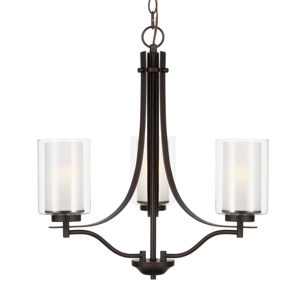The Elmwood Park three light single tier chandelier in bronze is the perfect way to achieve your desired fashion or functional needs in your home. Elmwood Park by has clear glass tube shades with an inner white glass element that softens the light and helps cast an even glow. A cylinder of etched glass is centered within a larger cylinder of clear glass which encircles each light bulb to create this stunning visual effect. The full assortment includes three-, five-and nine-light chandeliers, a four-light linear, one-light mini pendant, a three-light pendant, a two-light semi flush which is convertible into a pendant, and one-, two-, three- and four-light bath fixtures. All fixtures offered in either a Brushed Nickel or Brushed Oil Rubbed Bronze. Incandescent and ENERGY STAR-qualified LED lamping are available; all fixtures are California Title 24 compliant.