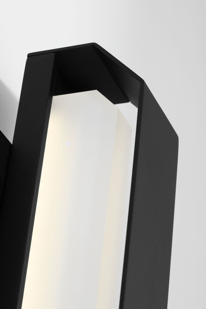 Defined by a bold, faceted silhouette, the Lakemont 10" Outdoor Wall light brings a sculptural presence to exterior spaces. Its sleek linear frame is paired with a thick frosted acrylic light guide that diffuses illumination with smooth, even glow. Equipped with selectable CCT technology (2700K–5000K), it allows for customizable light tone, from warm and inviting to crisp and contemporary. Ideal for entryways, patios, and exterior walls.