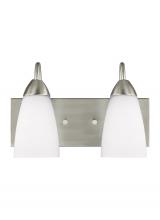 The Seville two light vanity fixture in brushed nickel provides abundant light for your bath vanity, while adding a layer of today's style to your interior design. The Seville collection represents commitment to high style at a sharp price. The modernist design is epitomized by the teardrop curves in the arms tipped by Etched glass diffusors throughout the chandeliers and bath fixtures. The collection offers a whole home lighting solution in every imaginable category. The assortment includes nine-light, five-light, and three-light chandeliers (either with up-light or down-light), pendants in four sizes as well as one-light, two-light, three-light , four-light and five-light wall/bath fixtures. Install a stylish and elegant addition to any room in the house. Seville is offered in Brushed Nickel and Burnt Sienna finishes.