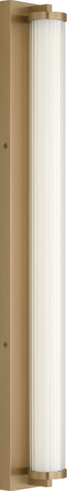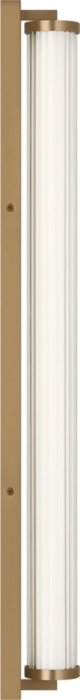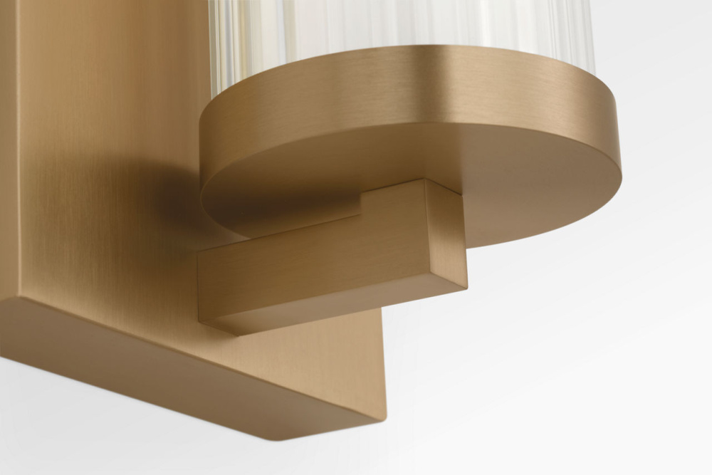 The Weston 34" Vanity combines linear symmetry with material depth, featuring a ribbed glass lens framed by a full-length metal backplate. Dedicated LED technology delivers efficient, ambient light while the textured diffuser enhances clarity and softens glare. suited for horizontal mounting in bathrooms and powder rooms where diffused illumination and visual structure are required.
