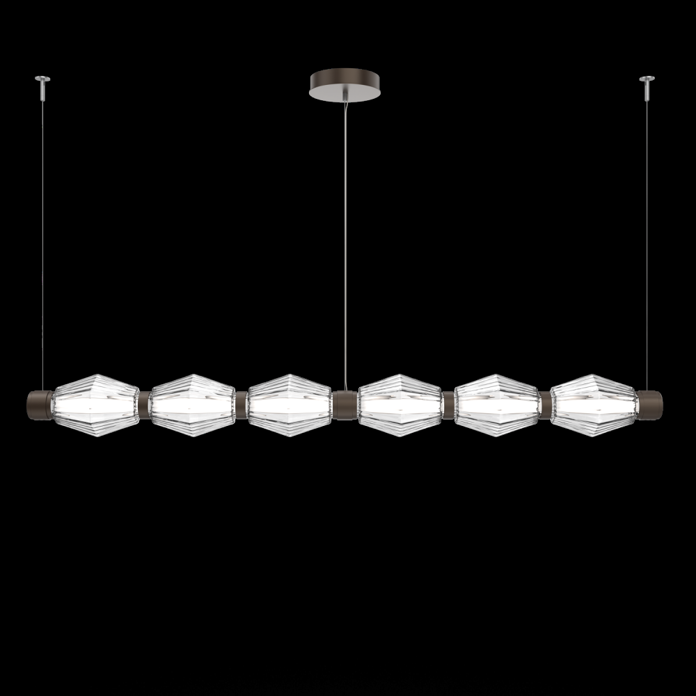 Aalto Mandrel Linear - 74-Inch-Flat Bronze-Clear Blown Glass-Stainless Cable-LED - 3000K